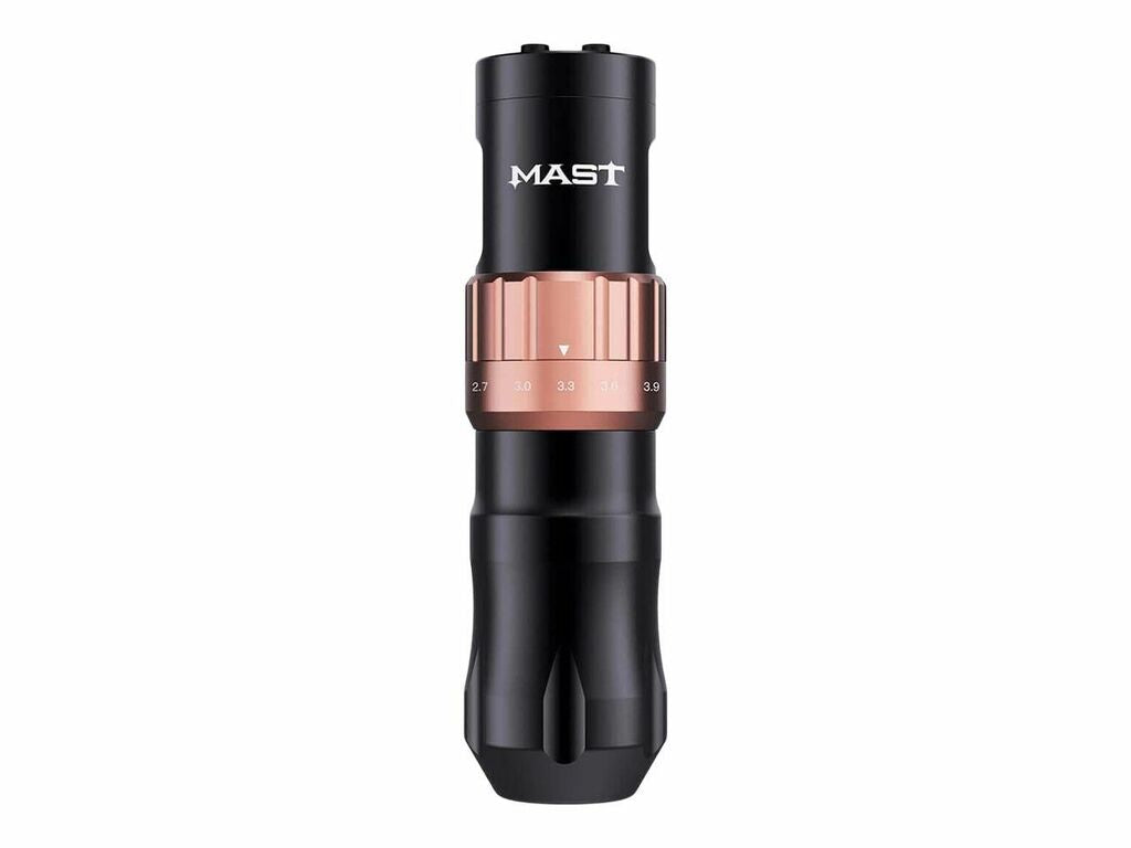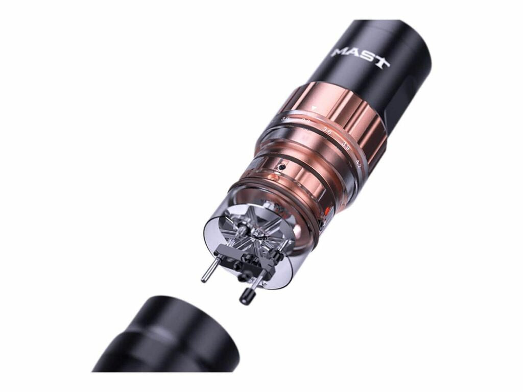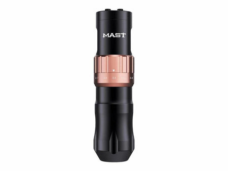 Mast Fold 2 är en mångsidig trådlös Tattoo- och PMU-maskin som låter dig justera slaglängden direkt med hjälp av det praktiska justerhjulet. Maskinen kan användas både trådlöst med batteripaket och trådbundet via RCA-kontakt – båda alternativen ingår. Denna penstilsmaskin har ett klicksystem för att enkelt ställa in nåldjupet samt ett avancerat växelsystem som säkerställer en jämn och mjuk applicering av bläck.