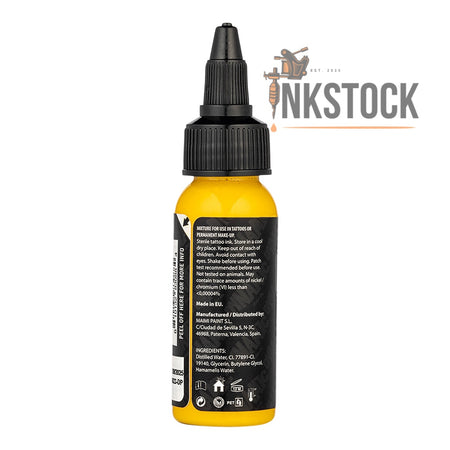 En REACH-certifierad tatueringsfärg i varm solgul nyans från Dynamic Platinum-serien.
