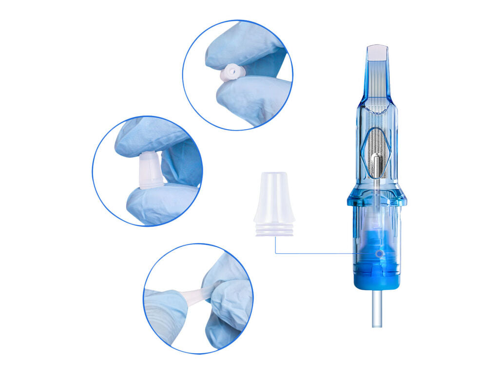 Eliot-kassetterna är utrustade med ett säkerhetsmembran, en avgörande funktion som förhindrar att bläck rinner tillbaka in i tatueringsmaskinen. Dessutom finns en stabiliseringsstång som håller nålen stadigt på plats under arbetet och säkerställer maximal precision.