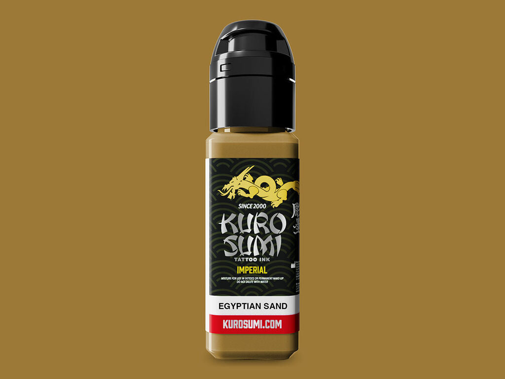 Egyptian Sand är en varm, mjuk sandton som lämpar sig väl för hudnära nyanser, bakgrunder och subtila övergångar i realistiska tatueringar.