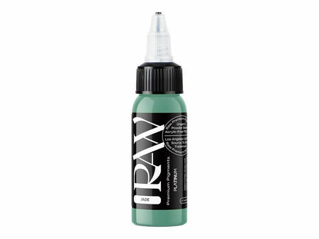 Jade från Raw Pigments Platinum EU Range – ljus mintgrön nyans med mjuk ton. En del av Raw Pigments Platinum EU Range – högkvalitativa, REACH-godkända, veganska och organiska tatueringsfärger utvecklade för professionella tatuerare.