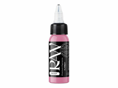 Pink Slip från Raw Pigments Platinum EU Range – ljus, kall rosa nyans med medelvit ton. REACH-godkänd, vegansk och organisk tatueringsfärg med mjuk applicering och jämn täckning.