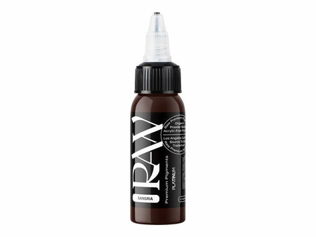 Sangria från Raw Pigments Platinum EU Range – djupt vinröd nyans med full intensitet, perfekt för mörka skuggor eller livfulla detaljer. REACH-godkänd, vegansk och organisk tatueringsfärg med jämn applicering.